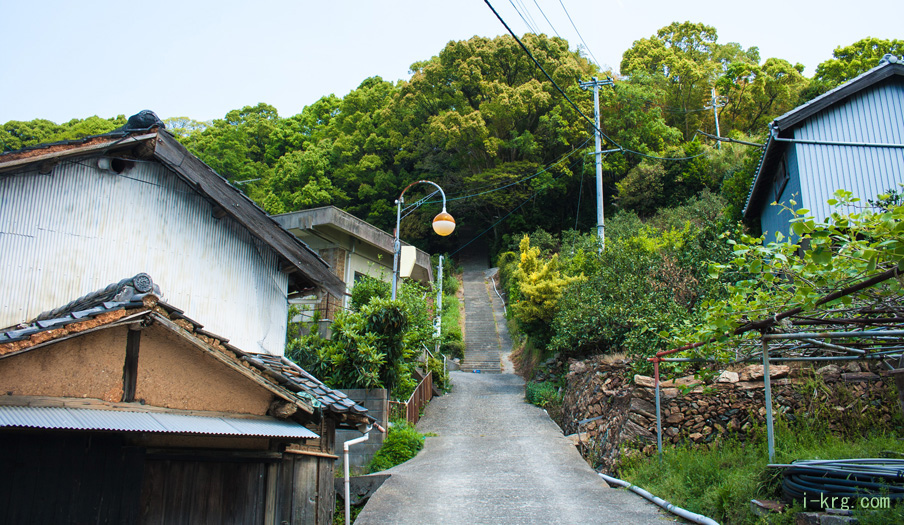 階段を登り切ると、アスファルトの道路に出会う。